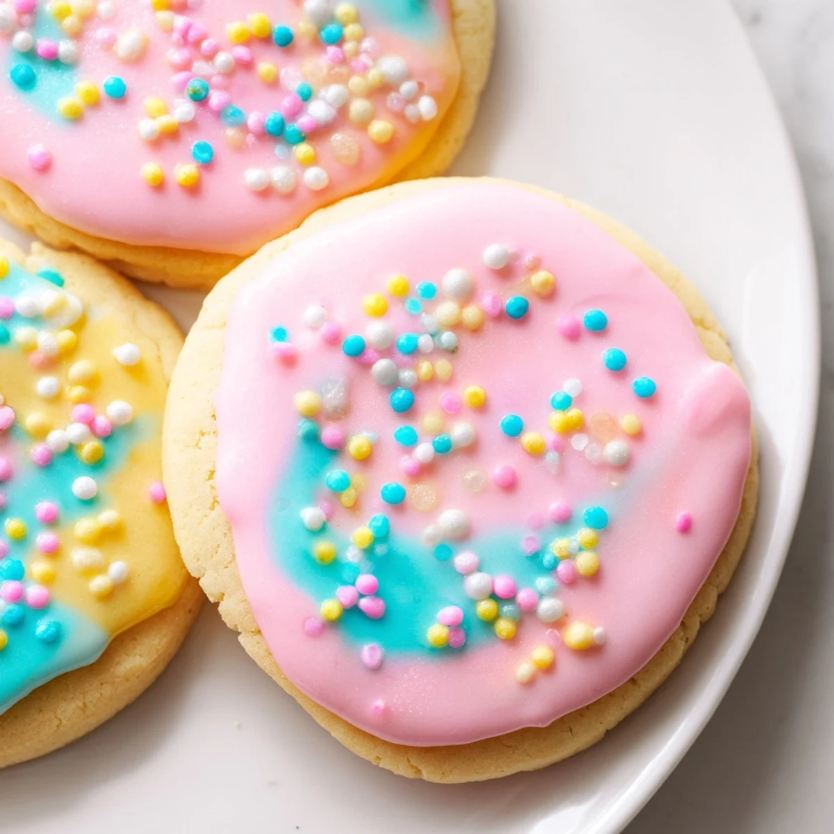 The royal icing creates a smooth, professional finish that sets beautifully and can be tinted with any pastel colors. Top with sprinkles while wet for extra Easter flair. Each batch yields 24 decorated cookies that stay fresh in an airtight container for up to a week.