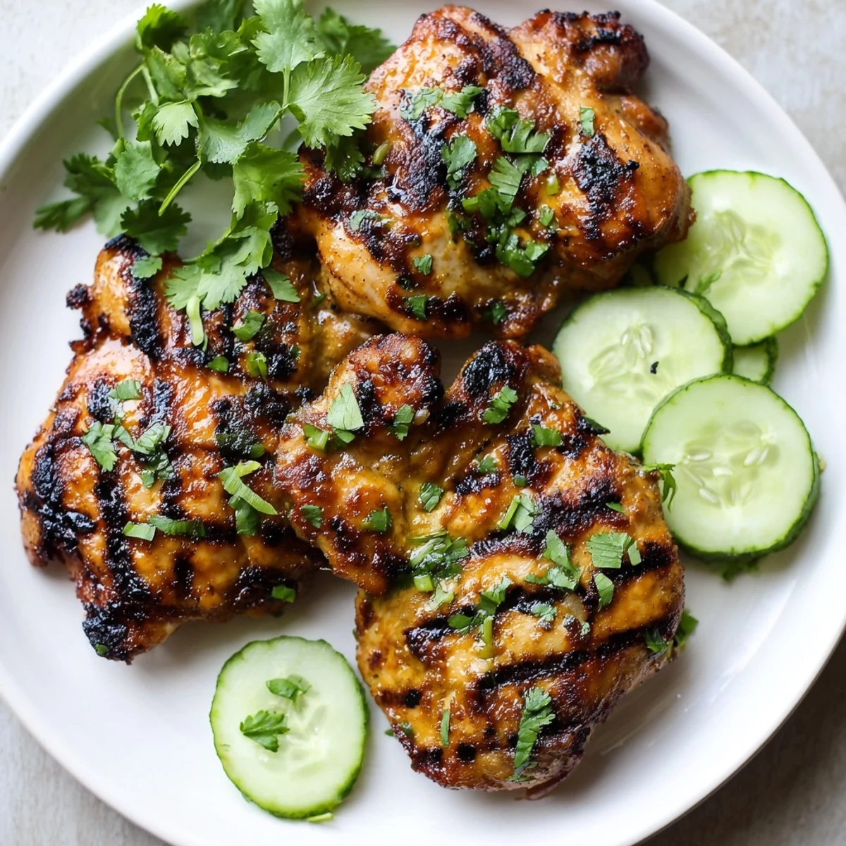 This Vietnamese-inspired grilled chicken features succulent thighs marinated in a fragrant blend of lemongrass, garlic, shallots, and fish sauce. The marinade creates tender, flavorful meat with beautiful char marks and a savory-sweet balance characteristic of Southeast Asian cuisine.