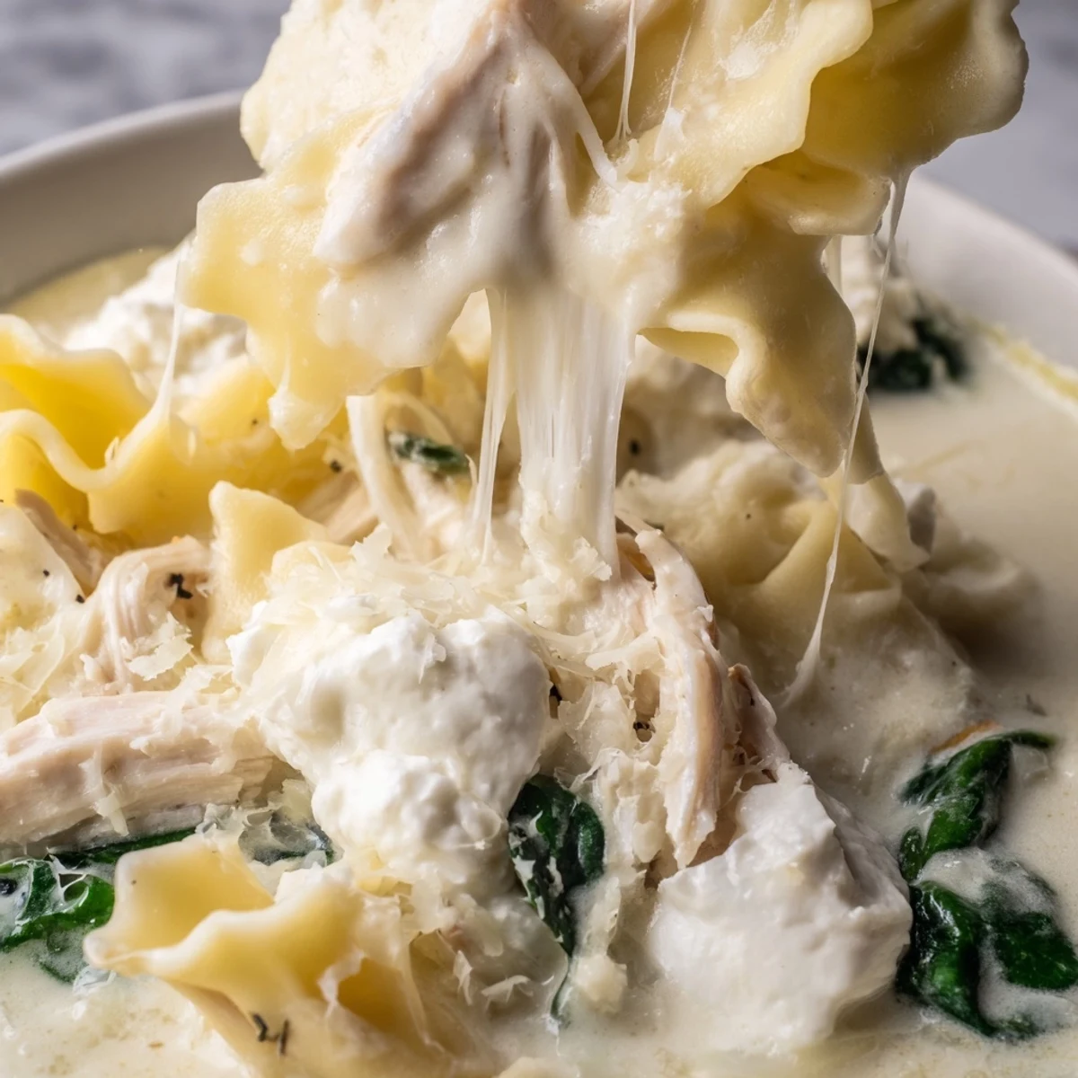 This comforting white lasagna soup transforms classic Italian flavors into a quick one-pot meal. Broken lasagna noodles simmer in a creamy broth with shredded chicken, onions, and garlic, then get finished with ricotta, mozzarella, and Parmesan for that authentic lasagna taste. Baby spinach adds freshness and color, while Italian herbs and a pinch of red pepper flakes provide depth. Ready in just 35 minutes, this soup delivers all the cheesy, comforting goodness of traditional lasagna without the long baking time.