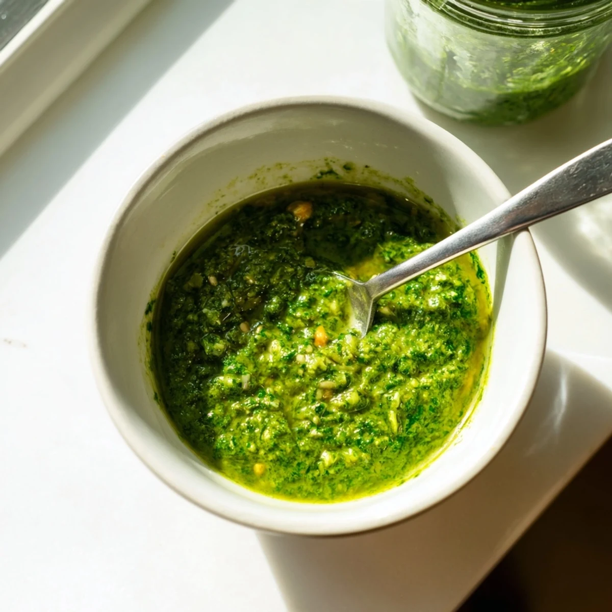 Beyond the obvious pasta toss, try this pesto swirled into Greek yogurt for an instant dip, spread on a turkey sandwich, or dolloped over roasted sweet potatoes. My favorite unexpected use is mixing a spoonful into scrambled eggs right at the end.